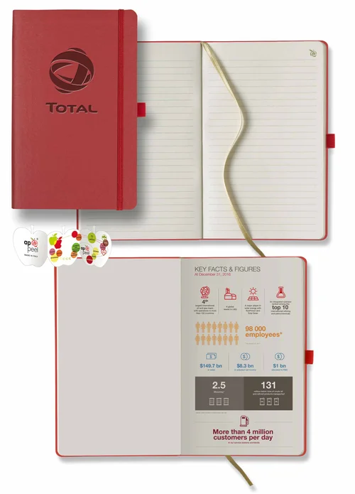 Cover decorated with deboss + 4CP, with custom printed pages.